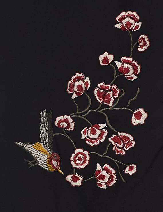 Vero Moda Women Black Embroidered Short Sleeve Round Neck Regular Fit Casual Top