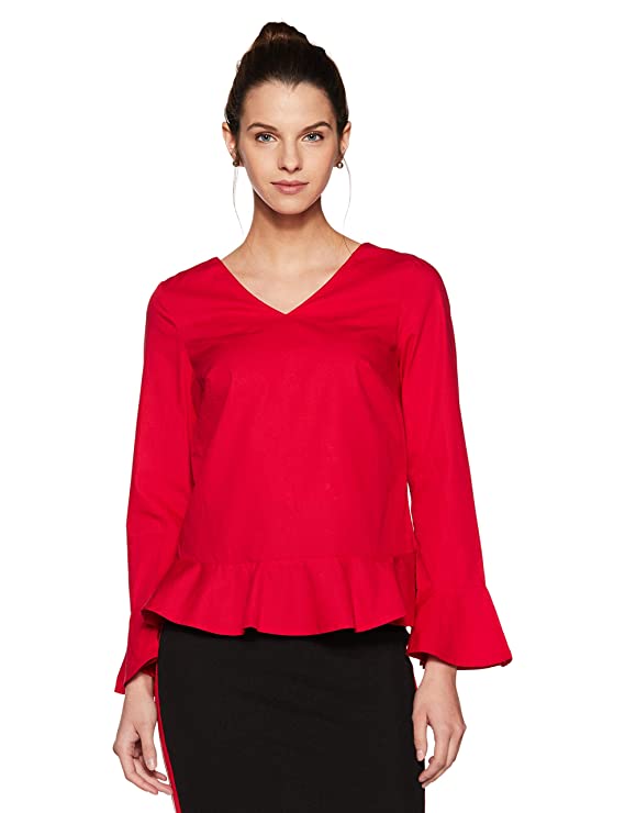 Vero Moda Women Red Solid V-Neck Long Sleeves Regular Fit Cropped / Short Casual Wear Top