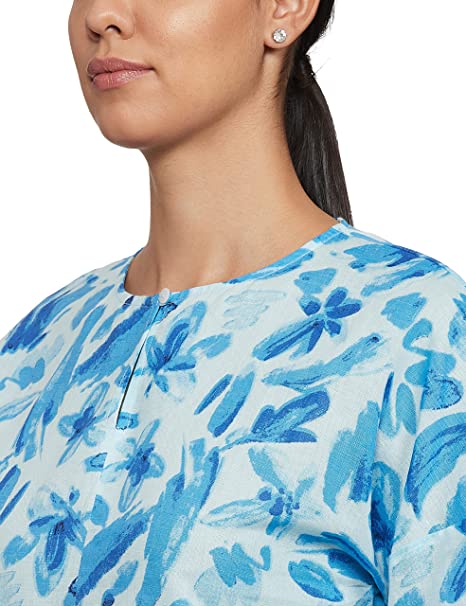 Vero Moda Women Blue Floral Printed Round Neck Long Sleeves Regular Fit Cropped / Short Casual Wear Top