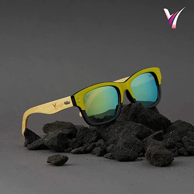 VIRLA ” Men & Women Handcrafted Airforce Blue Bamboo Sunglasses ” Iconic & Stylish